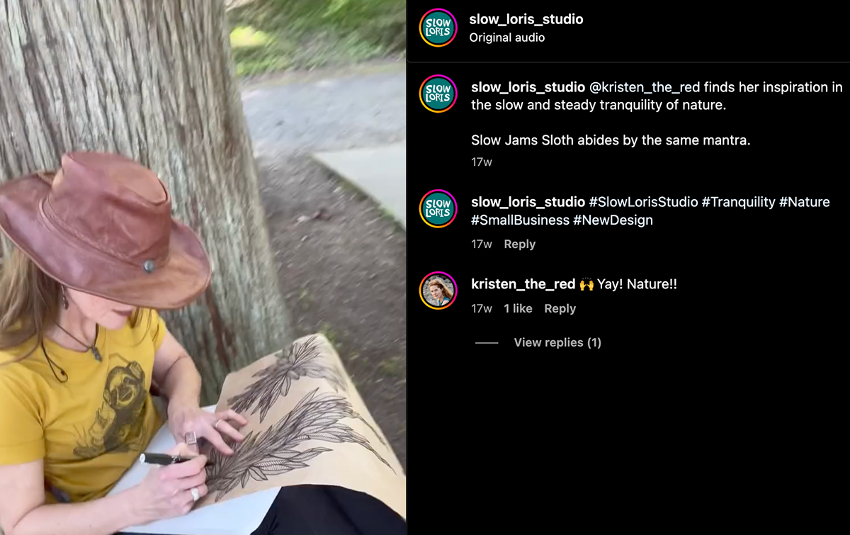 I worked as a freelance art director and content producer for Slow Loris, a Guemes Island–based t-shirt company sold through REI and online. For their May 2024 campaign, I developed the "Nature Inspires Creativity" concept and collaborated with the lead artist, Jess, to align new designs with the theme. I coordinated with photographers and local Pacific Northwest artists to visually showcase the shirts through lifestyle shoots that connected with Slow Loris’s nature-loving audience.