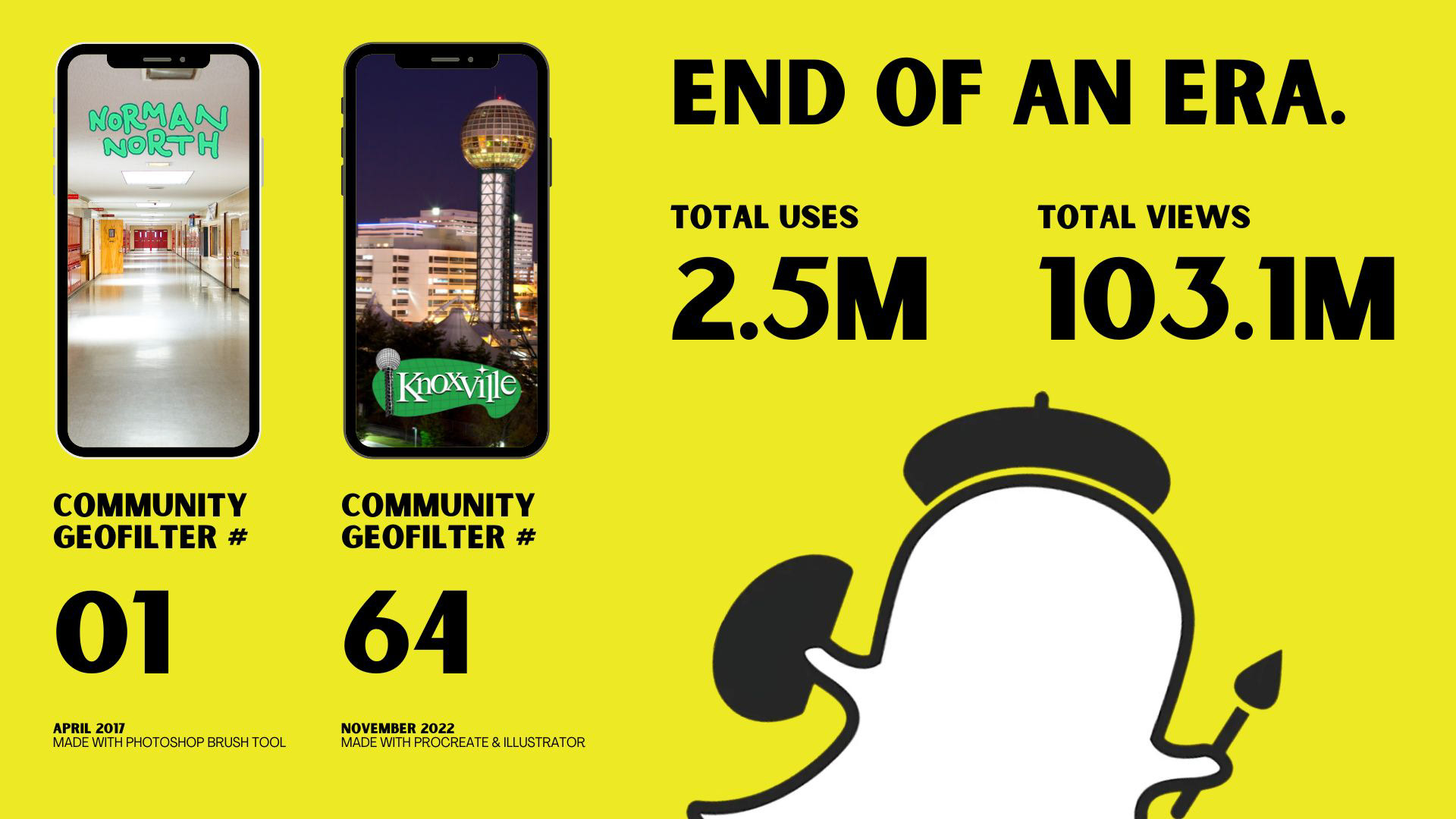 Designed and launched custom Snapchat geofilters for cities across the U.S. These filters were built for location-based sharing, emphasizing simple, recognizable design and platform-specific behavior.